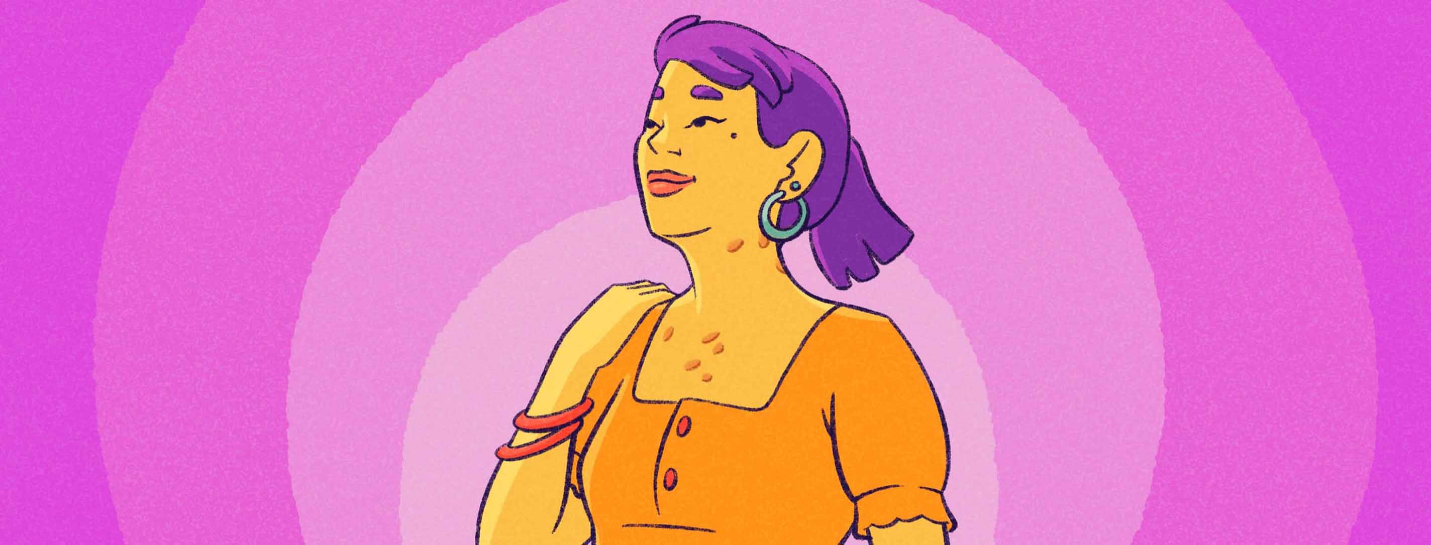 My HS is more visible but I don’t want to cover my entire body to hide these scars for multiple reasons. First, it is uncomfortable. I live in a hot climate. If I wore long sleeve shirts and long pants all the time, I would become overheated and sweaty. Sweat is a trigger for me, so this would not help my HS. Second, I like to experiment with what I am wearing. Having fun with fashion helps to build my confidence. Sometimes this means I wear a fun flowing low-cut sleeveless dress! Other times I wear shorts and a cute tank top. Both of these outfits show my neck, chest, legs, and arms, where I have active HS flares and scar tissue.